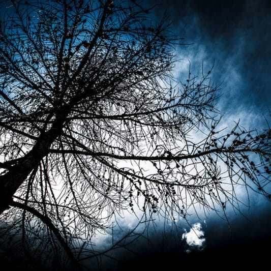 Lärche vor dramatischem Himmel. Lärche vor dramatischem Himmel – Naturfotografie im Gebirge Die fast kahlen Äste der Lärche zeichnen sich klar vor dem bewegten Himmel ab. Reduziert und doch markant zeigt sich der Baum in seiner eigenen Schönheit.