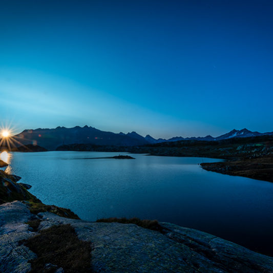 Morgenstimmung am Totensee. Frühmorgens taucht die aufgehende Sonne die Grimselpasshöhe in ein schönes und faszinierendes Licht.Mehr zu Landschaften